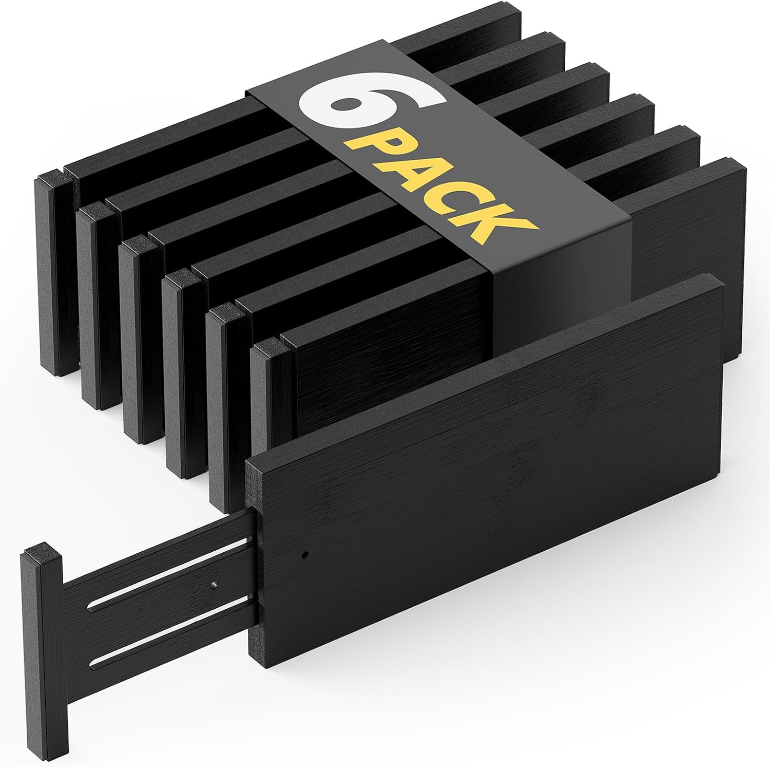 SpaceAid Bamboo Dresser Drawer Dividers 6 Pack, 4.65“ High Adjustable 12.5“-17” Drawer Organizers, Expandable Organization for Clothing, Clothes, Dressers, Black