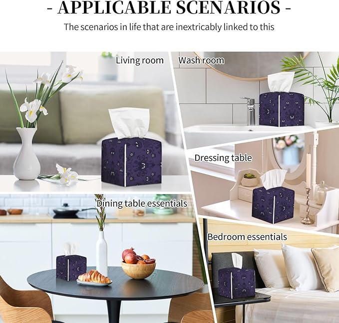 - EASY TO REFILL -- In order to make the facial tissue box holder easy to be refilled, we designed it with velcro belt on the bottom, what you need to do is just open the velcro belt and tuck the tissue box into the tissue box cover. Perfect for end tables, night stands, countertops, vanities and desks throughout your home; Use in kitchen, bedroom, living room, family room, craft room, bathroom; Perfect for your home, office, car, store or boutique.